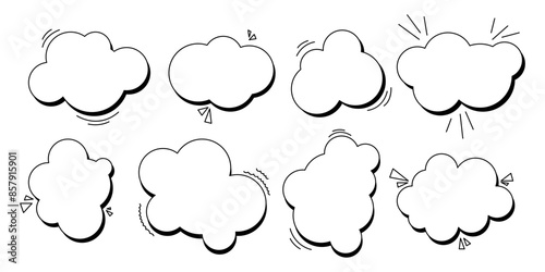 Set of Hand-drawn Speech Bubbles. Black and White Chat Speech or Dialogue. Vector Illustration.