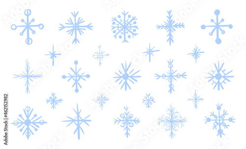 Set of hand-drawn vector snowflakes. Isolated flat illustration of decorative winter elements