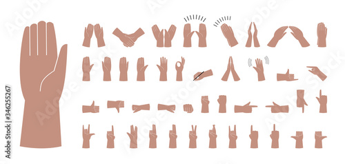 Set of hands with different gestures, color vector illustration in a flat style. Isolated image on a white background