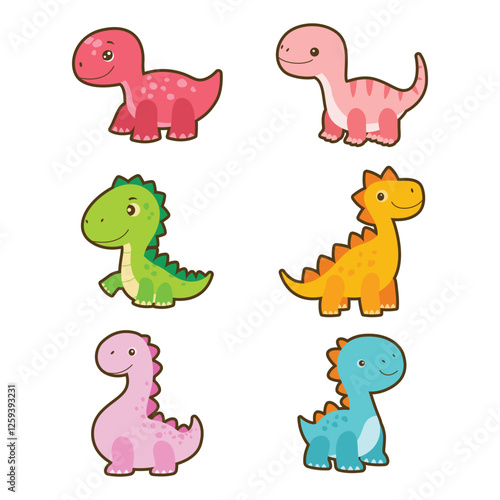 Set of Happy Funny Baby Dino Dinosaur Animal Cartoon Character Sticker