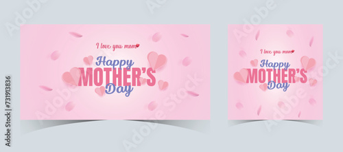 Set of Happy Mother's Day Web Banners and Post Templates. Mother's Day Greeting Card with 3d Love Balloons. Happy Mom Love Sign with Heart and Flowers. Flying Pink Paper Hearts. Mom Love Background