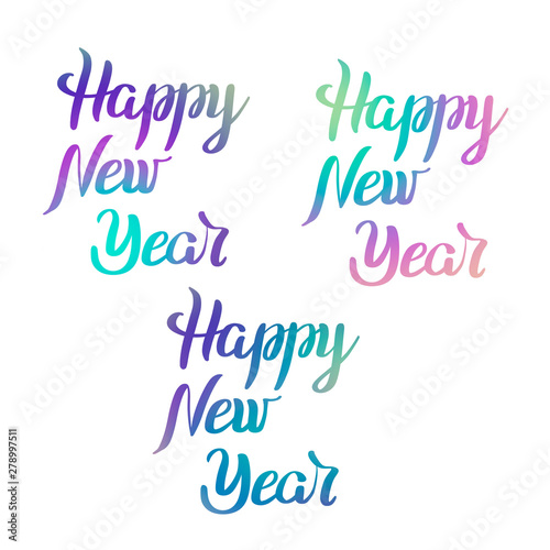 Set of Happy New Year colorful lettering on white background. Holiday illustration. Design for invitation, print, card