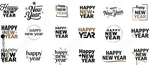 Set Of Happy New Year Hand Lettering Calligraphy Elements , Handwritten modern lettering .