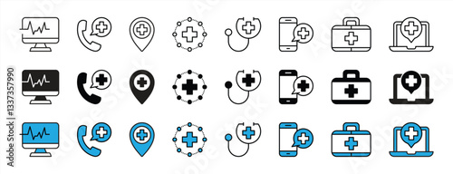 set of healthcare thin line icon. contain digital healthcare, cardiogram, medicine, online, emergency, checkup, doctor icon collections. vector illustration