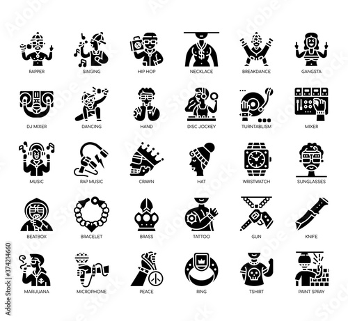 Set of hiphop thin line and pixel perfect icons for any web and app project.