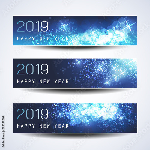 Set of Horizontal Christmas, New Year Headers or Banners Design - 2019