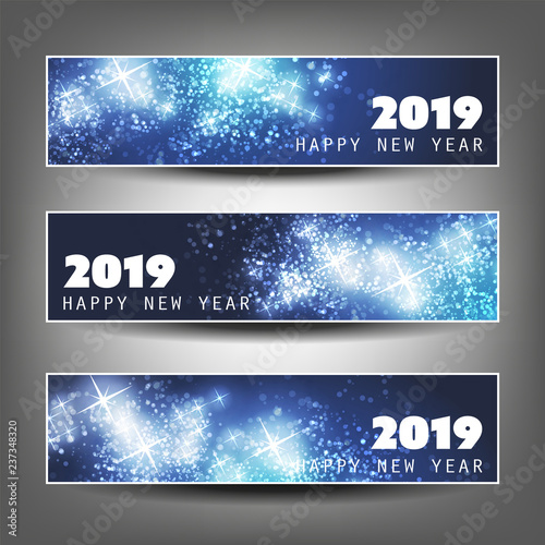 Set of Horizontal Christmas, New Year Headers or Banners Design - 2019
