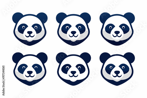 Set of icons related to mascot panda head vector design