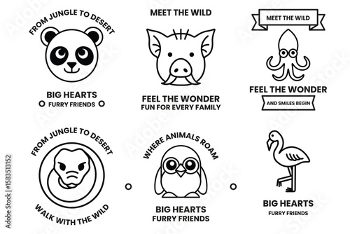 Set of illustrations in the concept of various animals in line drawing style
