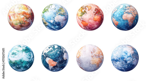 Set of illustrations of an Earth in polygonal style isolated on transparent background