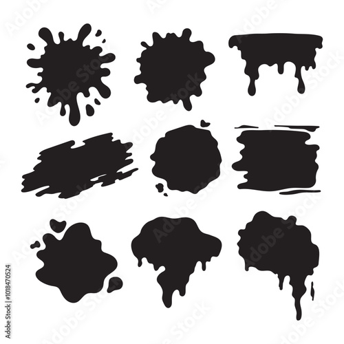 set of ink splashes and blots, black stains isolated on white background, vector illustration,simple abstract shapes, design elements for backgrounds,text,banner