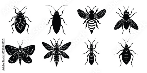 Set of insect icons silhouette illustration. Insects vector collection