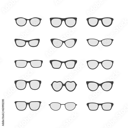 Set of isolated glasses. Vector glasses models icons. Sunglasses, glasses isolated on white background. Silhouettes. Various shapes - stock illustration.