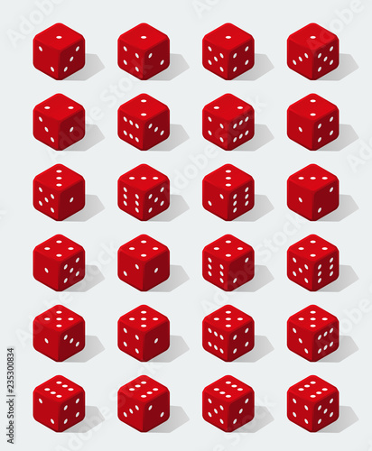 Set of isometric red dice