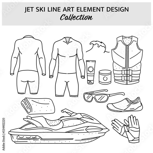 Set of Jet Ski equipment hand drawn vector illustration. Sports icon design template.