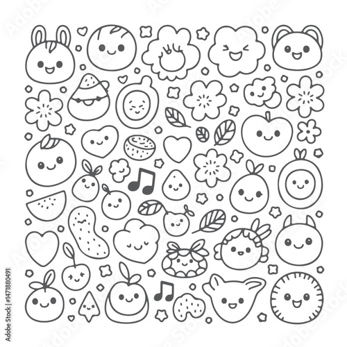 Set of kawaii doodle on white background. Hand drawn abstract doodle isolated on white background.