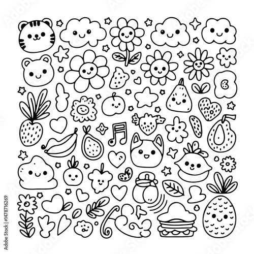 Set of kawaii doodle on white background. Hand drawn abstract doodle isolated on white background.
