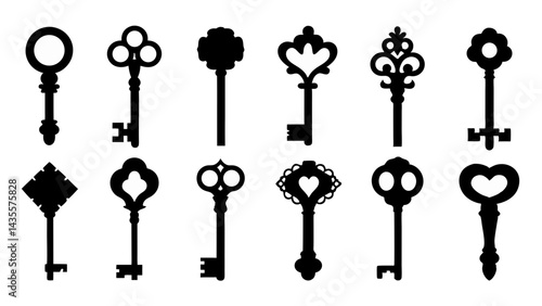 set of key silhouette vector on tranparent background