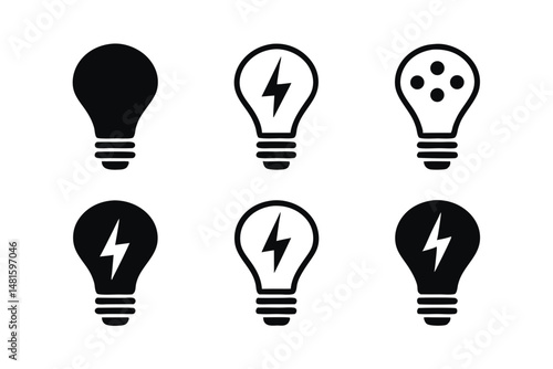set of light bulb with Lightning Bolt icon vector silhouette illustration isolated on white background