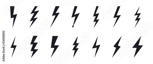 Set of lightning icon. Lightning bolt, thunder bolt signs. Energy symbol. Charge icon. Vector illustration.