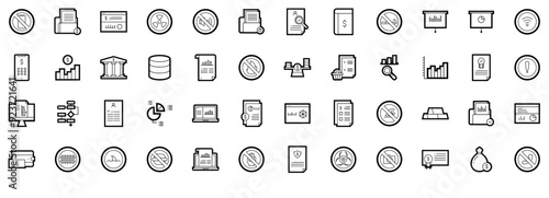 Set Of Line Icons Silhouette Vector Logo Design Containing Finance,Management,Information,Report,Business Stroke Icon Collection. Vector Illustration
