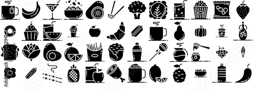 Set Of Linear Food And Drinks Vol2 Glyph Icons Collection Isolated Silhouette Solid Icons Including Food,Fruit,Vegetable,Meal,Drink Infographic Simple Vector Illustration Logo