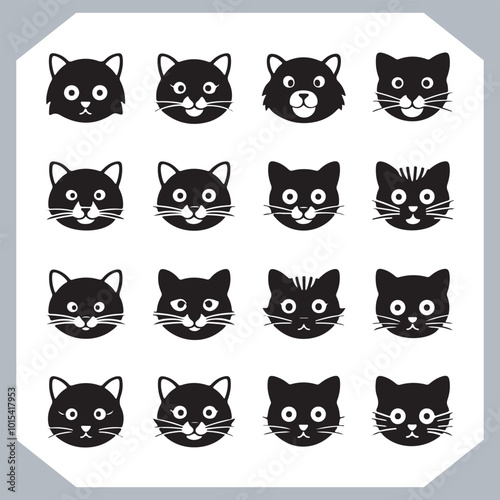 Set of logotype cat silhouette and Cat head collection, collection of silhouette of Cats on white background