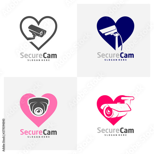 Set of Love CCTV Camera Logo Design Vector Template, Concept Symbol Icon