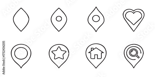 Set of map location pin outline icons vector