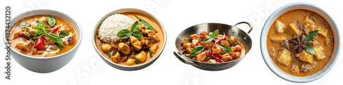 set of Massaman curry with oak-roasted chicken, oak-roasted chicken and massaman curry, oak-smoked roasted chicken and Thai massaman curry, on a transparent backgrounds