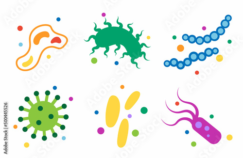 Set of microbes. Collection of cartoon viruses. Vector illustration of microorganisms. Color drawing of a set of bacteria. Monsters collection. Funny monster, cartoon character.