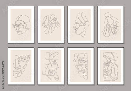 Set of minimalist contemporary portrait of woman beauty surreal face