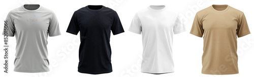 set of mockup crewneck t-shirt with short sleeves isolated on transparent background