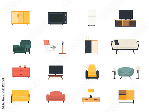 Set of Modern Living Room Furniture in Various Styles and Colors for Home Interior Design