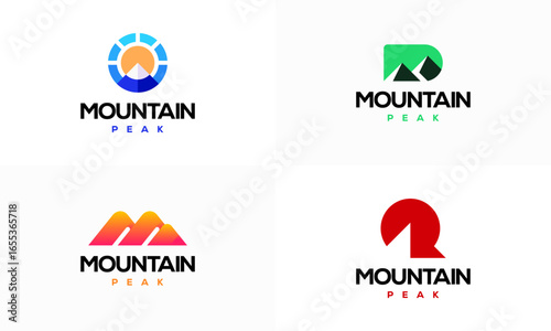 Set of Modern Mountain Peak logo designs concept vector, Simple Landscape Hills logo element Mountain Peaks