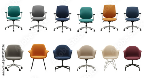 Set of Modern Office Chairs in Different Colors on Transparent Background