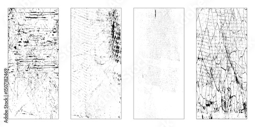 Set of monochrome texture background. Concrete overlay black and white texture. Vector grunge set.