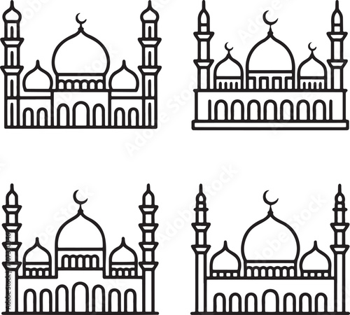 Set of Mosque Outline vector illustration isolated On Transparent Background