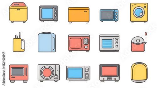 Set of Multicolored Icons Representing Various Types of Home Appliances