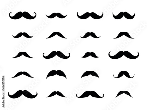 Set of mustache silhouette vector collection in flat design