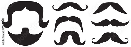 Set of mustaches glyph style. Mustache bundle. Funny mustache stickers. Printable mustaches for every game. Collection of mustaches mustache illustration. Hair style concepts. Black hair, human face