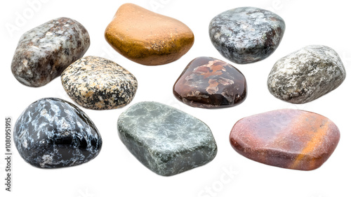 Set of natural color pebbles and gemstones on a transparent background. isolated background.