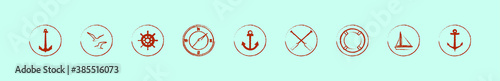 set of nautical modern cartoon icon design template with various models. vector illustration isolated on blue background