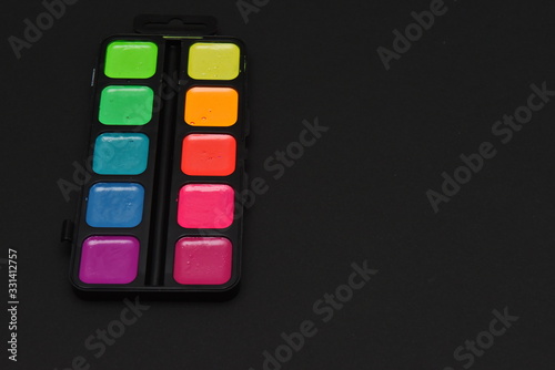 set of neon watercolor paints on a black background