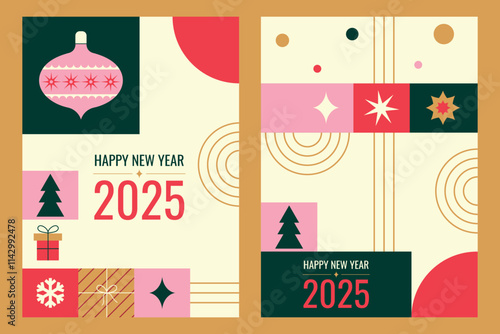 Set of New Year templates, flyers, posters. Abstract modern geometric patterns. Vector illustration.