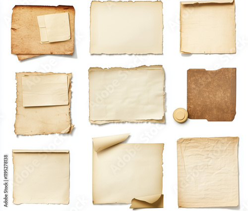 set of note papers on white background