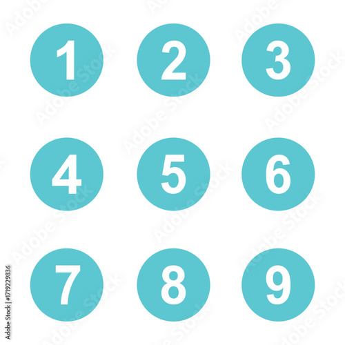 Set of numbers . Number circles set1 to 10 . Set of Round 1-10 numbers icon for education . colorful, sky Vector illustration