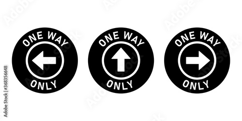 Set of One Way Only Round Floor Marking Sticker Icon with Direction Arrow and Text. Vector Image.