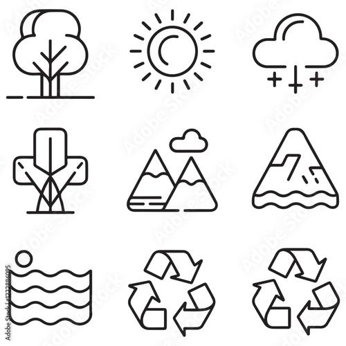 Set of outline icons related to environment. Linear icon collection. Editable stroke. Vector illustration