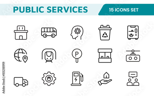 Set of outline Public Services icons. Minimalist thin linear web icon set. Line icons related to public utilities. Gas, electricity, water, heating.